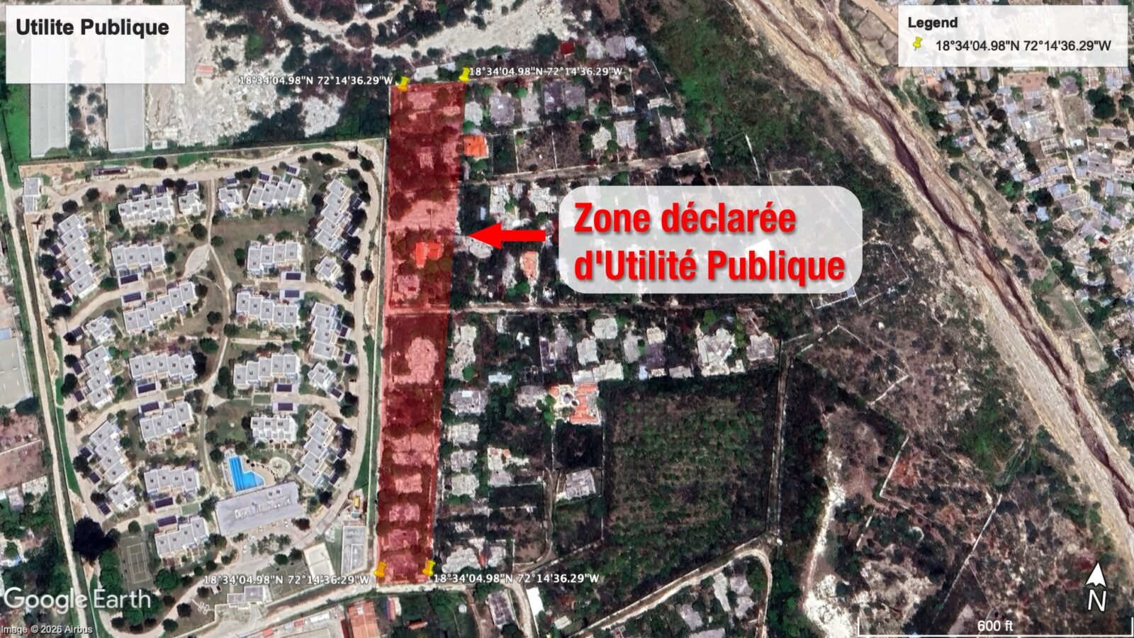 “Properties, land, and buildings located on the western side of the premises housing the Embassy of the United States of America, covering an area of one thousand two hundred eighty-nine square meters and twenty-four square decimeters (1,289.24 m²), are hereby declared of public utility in the commune of Tabarre,” states Article 1 of the decree.